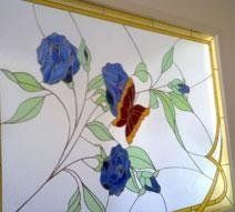 Realizzazione di diverse tipologie di serramenti ed infissi in vetro e cristallo decorato con motivi artistici.